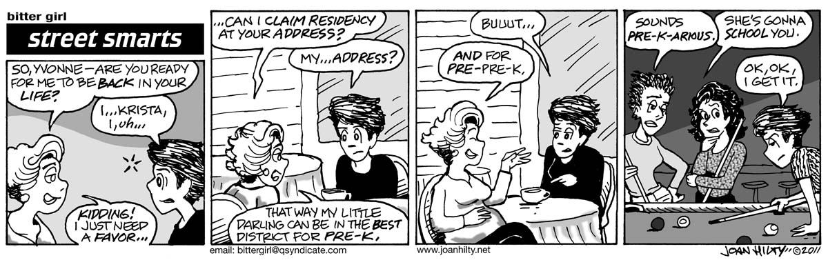 This wk’s strips: “Vision-Wary”, “Street Smarts”
