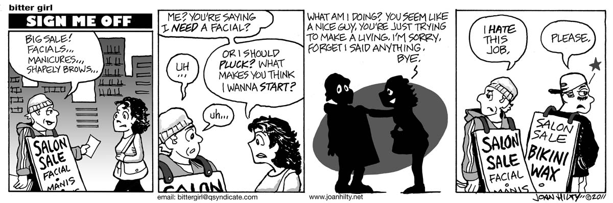 This week’s strips: “Darken My Door”, “Uneasy Rider”